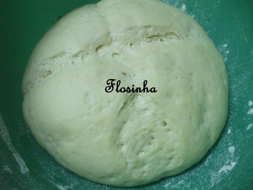 Amassa-se com as mãos (exercendo pressão com os punhos) até obter uma massa lisa e elástica. A massa estará pronta quando, fazendo pressão com o nó de um dedo, ela volta á forma original em segundos. Forma-se uma bola com a massa. Com uma faca, desenha-se uma cruz (x) na superficie da massa.