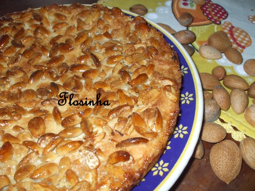 Leva-se ao lume a margarina com o açúcar, as amêndoas cortadas em falhas e o leite. Deixa-se levantar fervura e deita-se sobre a massa do bolo, quando esta estiver quase cozida e deixa-se no forno para acabar de cozer.