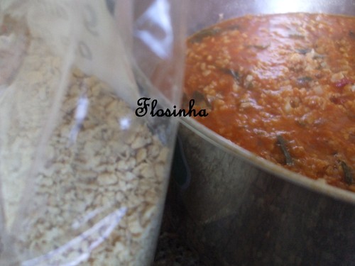 Coloca-se a soja numa taça, cobre-se com água quente e os cominhos e deixa-se repousar durante 30 minutos.