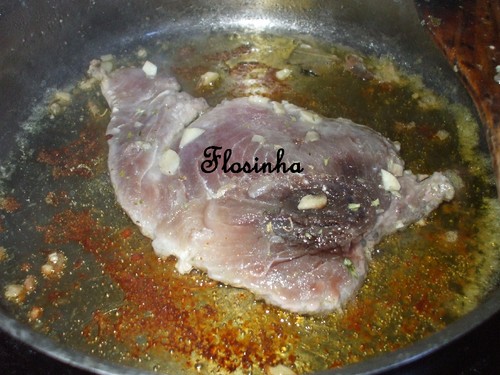 Enxugam-se com a ajuda de um papel absorvente ou um pano e fritam-se em azeite. Retiram-se os bifes para um recipiente e reserva-se.